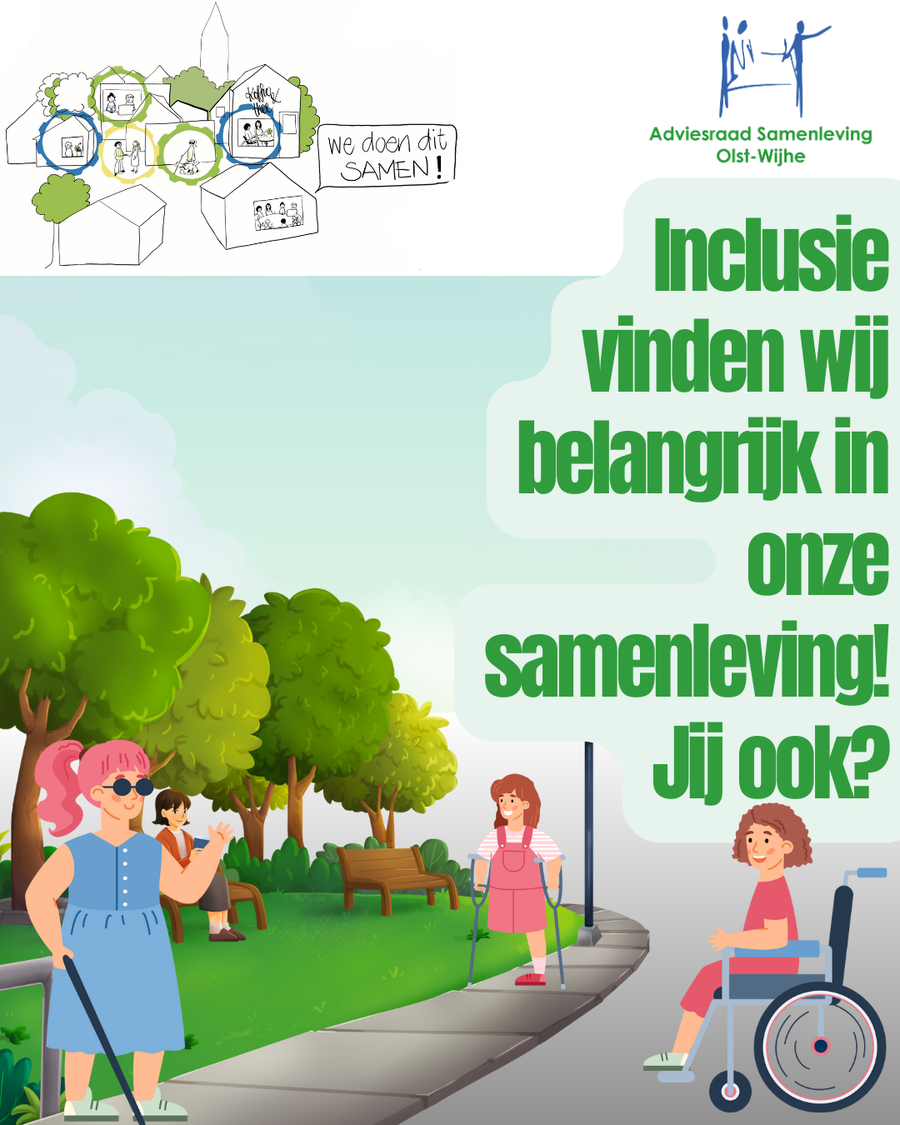 Wil jij ook bijdragen aan een samenleving waarin niemand buitengesloten wordt? Ontdek onze focusgroep Inclusie en lees meer over onze initiatieven op www.adviesraadsamenleving-olstwijhe.nl/adviesraad-samenleving/focusgroep-inclusie/.